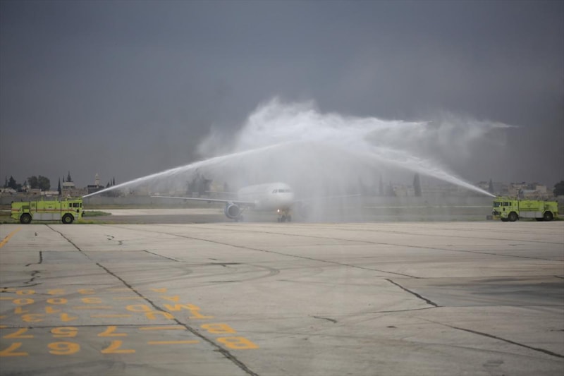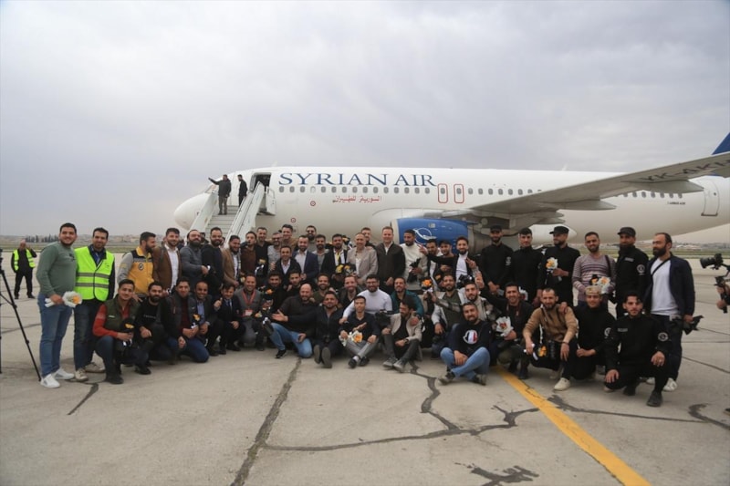 İlk uçuş, Şam Uluslararası Havalimanı'ndan gelen bir uçakla gerçekleştirildi. Havalimanında yapılan törenle karşılanan uçak, ardından Halep’ten Şam’a hareket etti.