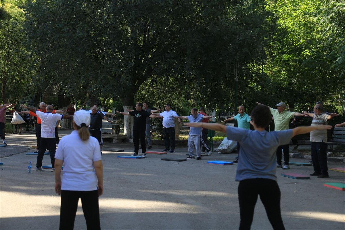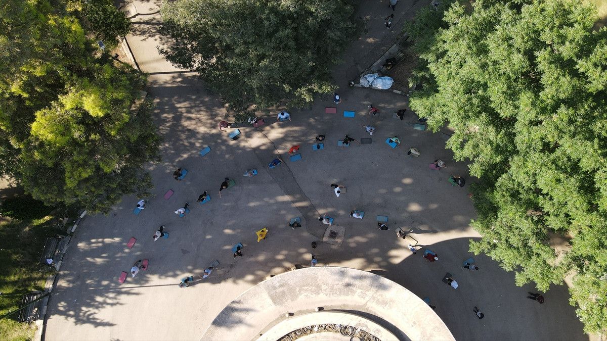Kadın, erkek, genç, yaşlı demeden çok sayıda kişi, Sporseverler Bireysel Sporlar Teknik Komitesine bağlı eğitmenlerin gözetiminde aerobik ve çeşitli egzersizler yapıyor.