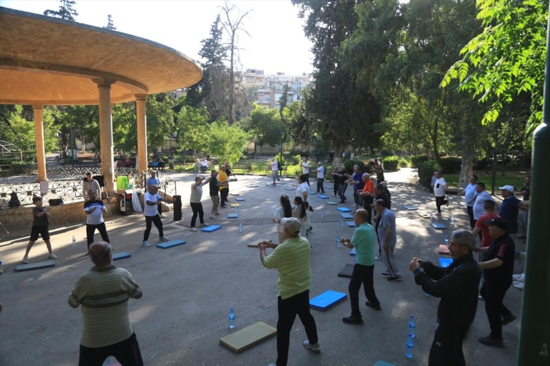 İç savaşın yıkıcı etkilerinin ardından yeniden bir arada olmanın yollarını arayan Halepliler, sabahın erken saatlerinde park ve meydanlarda toplanarak sporla güne başlıyor.