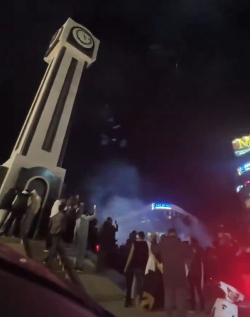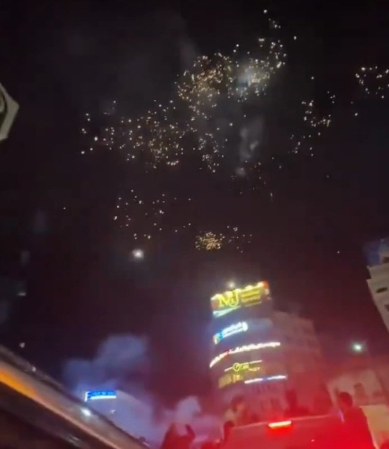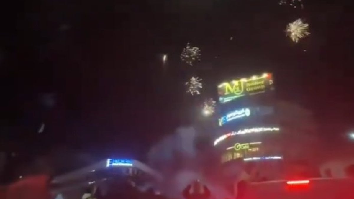 Görüntülerde kalabalığın havai fişeklere korna çalarak eşlik ettiği görüldü.