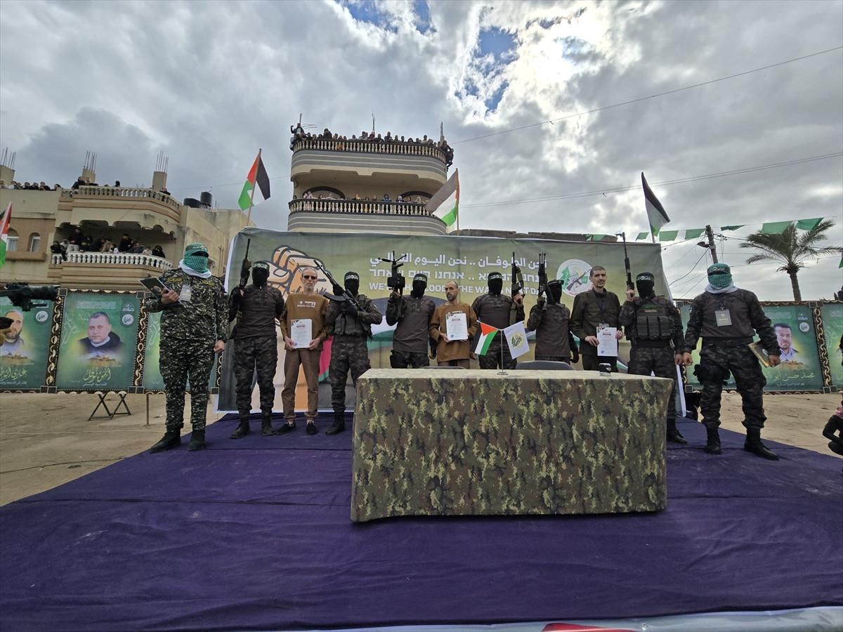 İsrailli esirlerin serbest bırakıldığı sırada Hamas yetkilileri, esirlerle röportaj gerçekleştirdi.