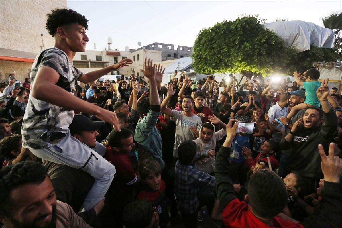 Bölgedeki AA muhabiri ve görgü tanıklarına göre, Gazze Şeridi'ndeki Refah, Han Yunus, Deyr el-Belah ve Nusayrat kentleri caddelerinde ve çadır kamplarında Hamas'ın ateşkes önerilerini duyurmasının ardından Filistinliler, sevinç gösterilerinde bulundu.