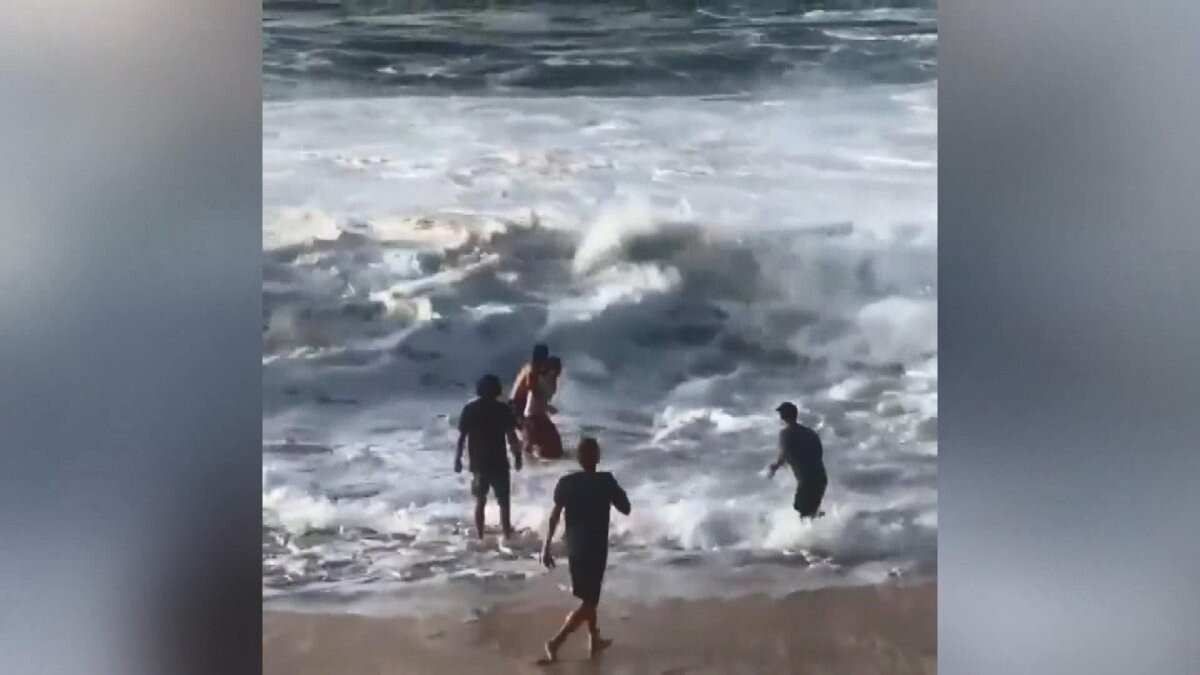 Wright, plaja koşarak dalgalarla mücadele eden kişiyi kurtarmayı başardı.