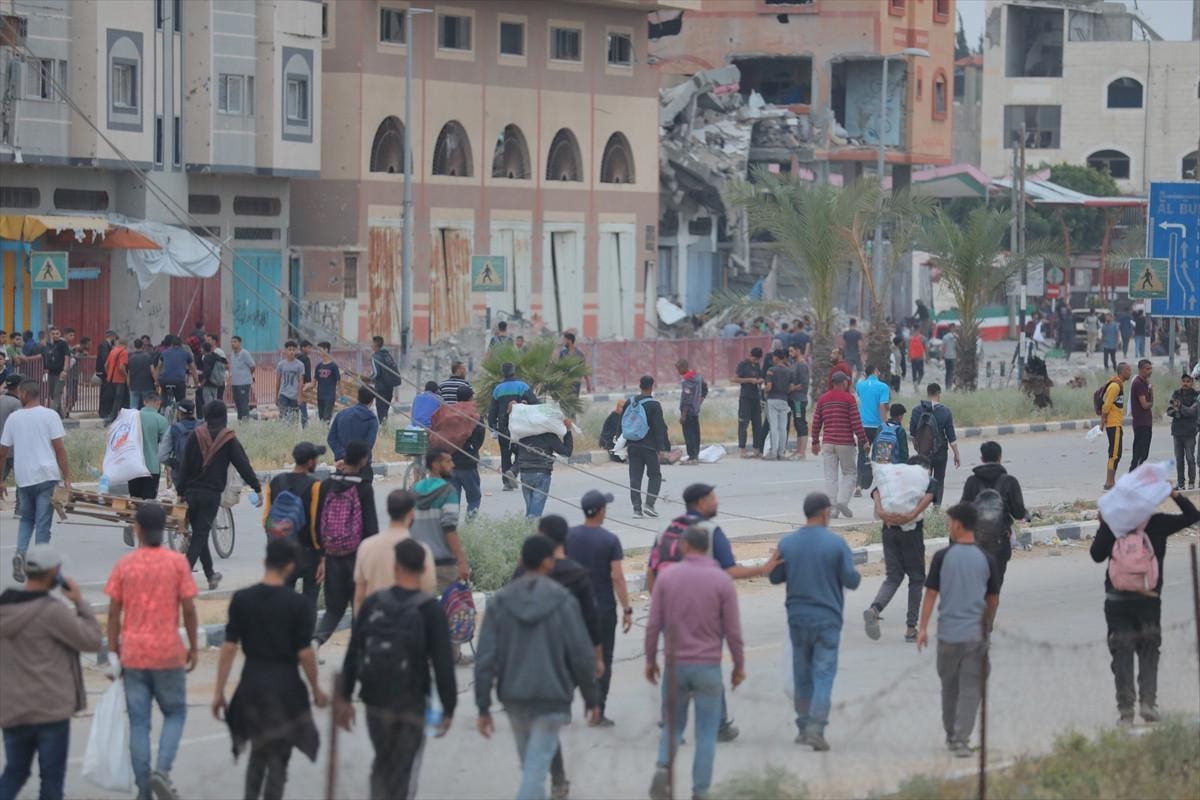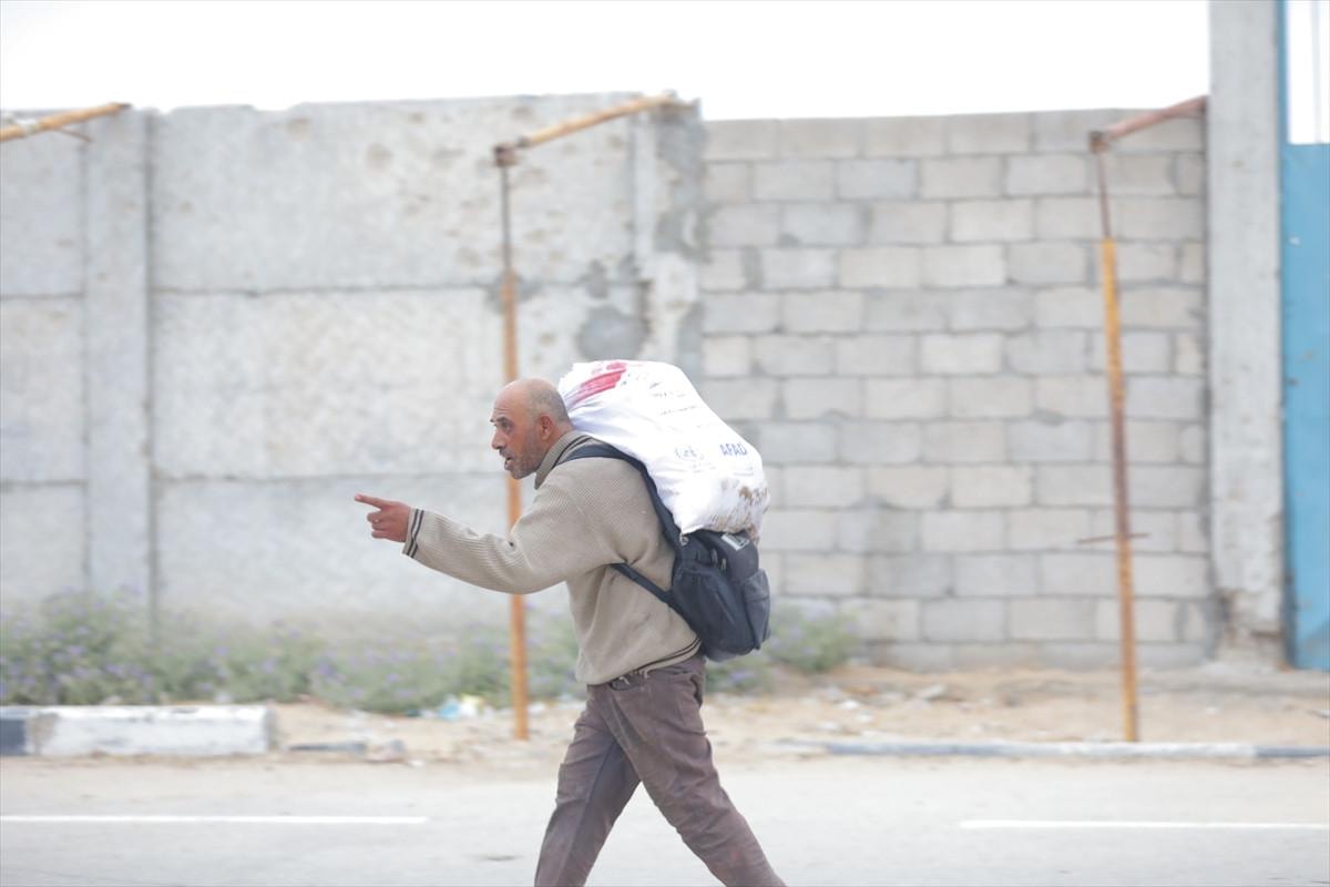 Gazze’nin farklı noktalarından gelen binlerce Filistinli, burada kurulan yardım noktalarına ulaşmak için zorlu yolları aşarak bölgeye akın ediyor.