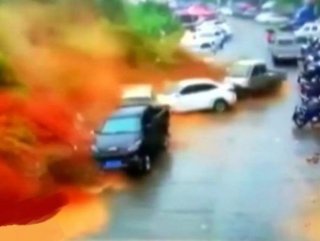 Videoda, büyük heyelanın, yolu üzerinde duran park halindeki otomobilleri yuttuğu görülüyor. Çin merkezli CGTN televizyonu, olay sonucu 1 kişinin hayatını kaybettiğini bildirdi.