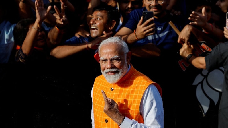 Bharatiya Janata Partisi (BJP) lideri Modi, oyunu kullandıktan sonra kameralara poz verdi.