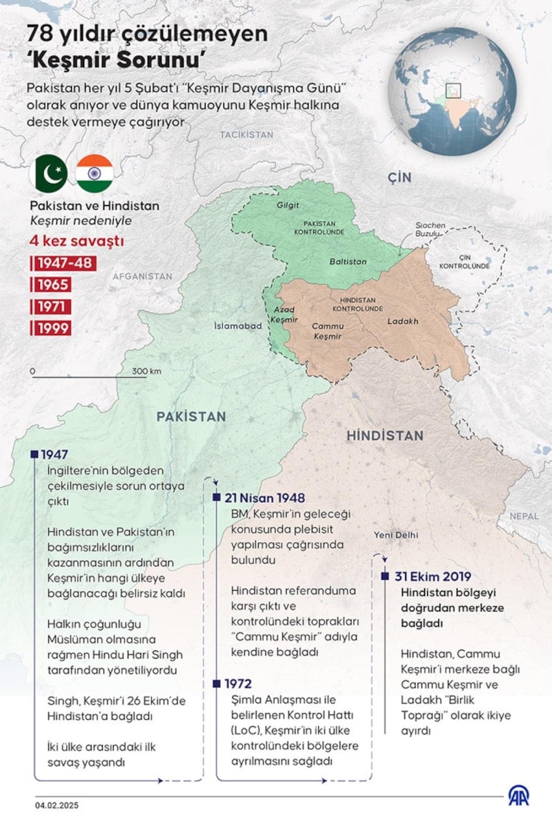 Keşmir’in hangi ülke toprakları içerisinde yer alacağı meselesi, Güney Asya'nın en uzun süreli ihtilaflarından biri olarak, 78 yıldır çözüme kavuşmayı bekliyor.