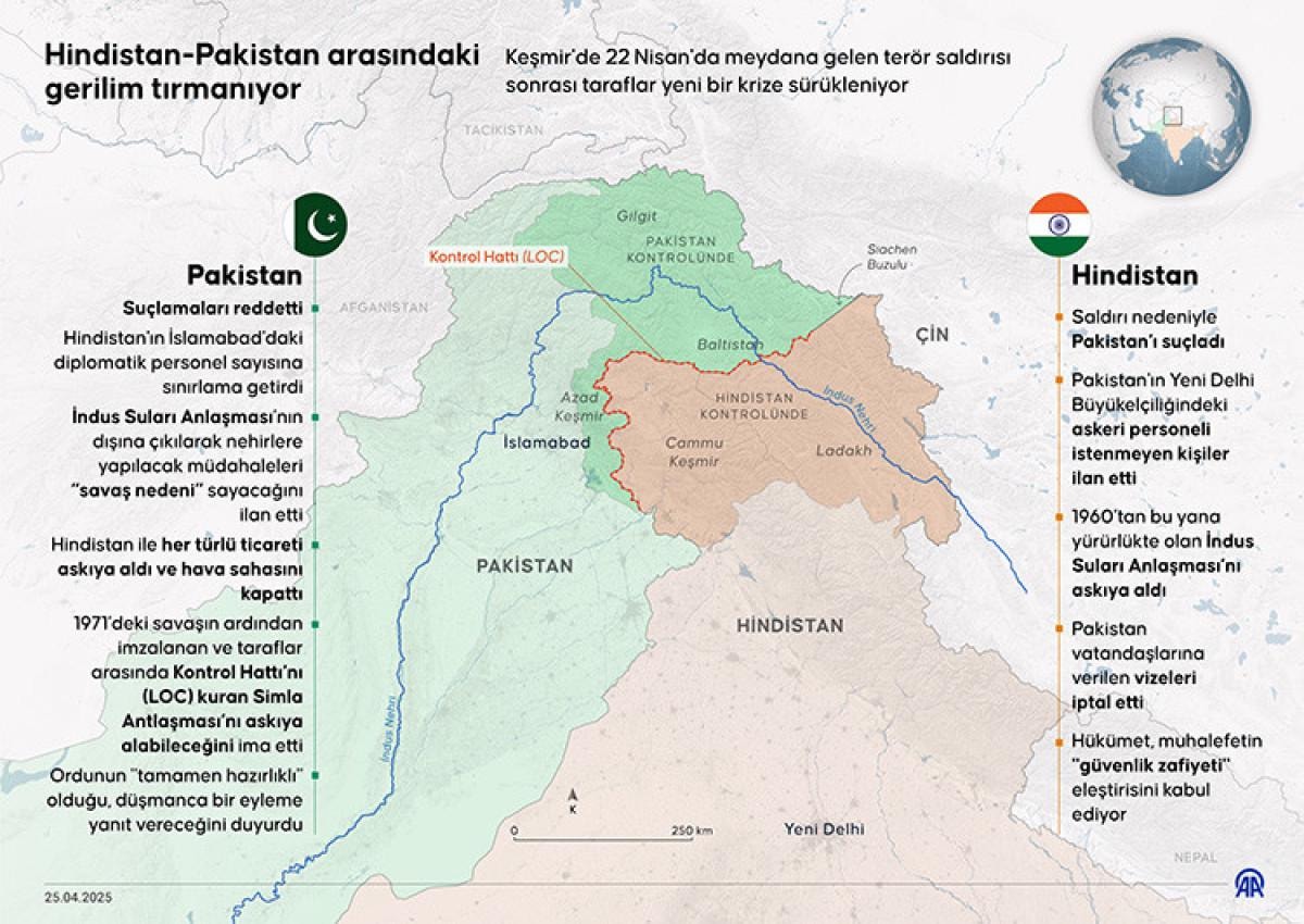 Hindistan'ın Cemmu ve Keşmir bölgesindeki Pahalgam'ın turistik bir noktasında 22 Nisan’da tatilcilere yakın mesafeden ateş açılmış, saldırıda 25 Hindistan vatandaşı yerli turist ile 1 Nepal vatandaşı hayatını kaybetmişti.