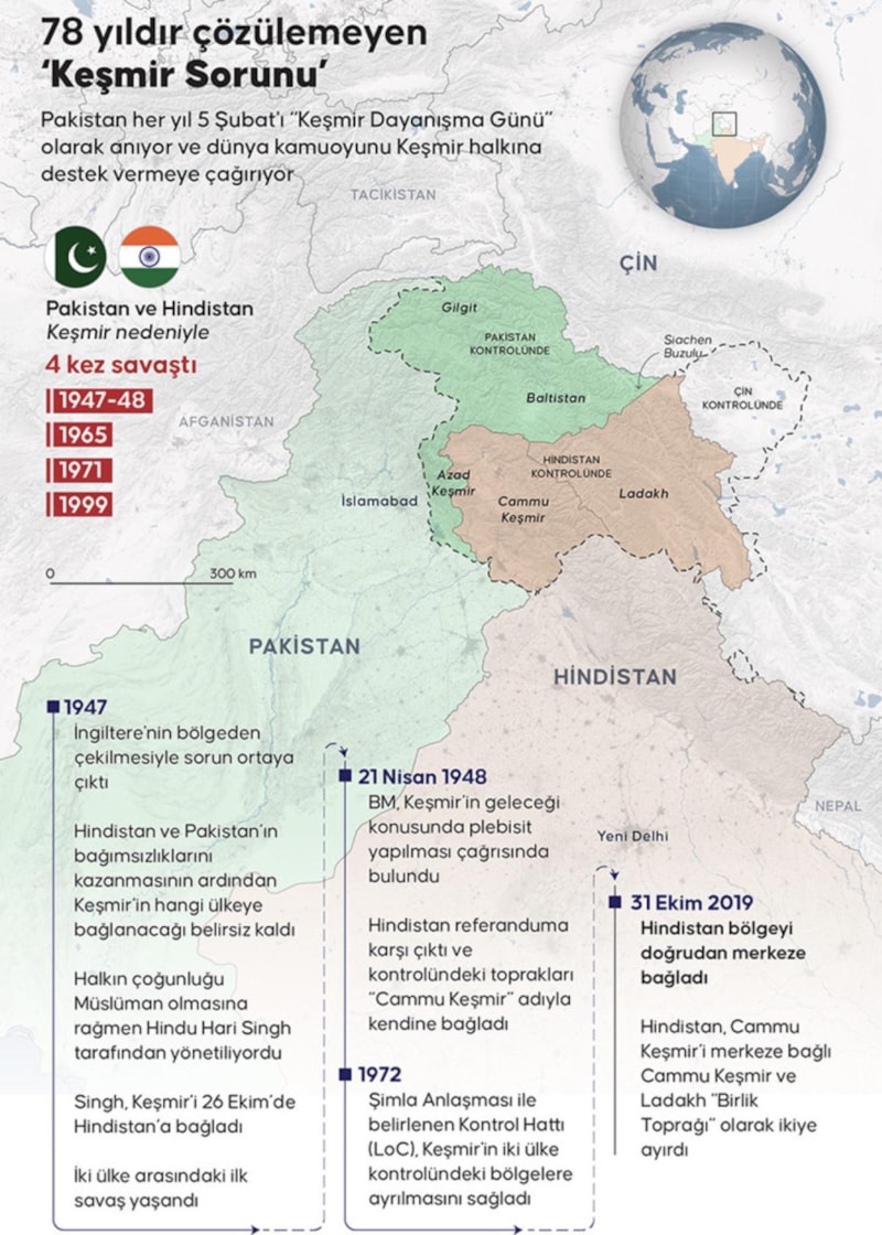 Hindistan ve Pakistan arasında savaş çanları çalarken Keşmir’in hangi ülke toprakları içerisinde yer alacağı meselesi, Güney Asya'nın en uzun süreli ihtilaflarından biri olarak, 78 yıldır çözüme kavuşmayı bekliyor.