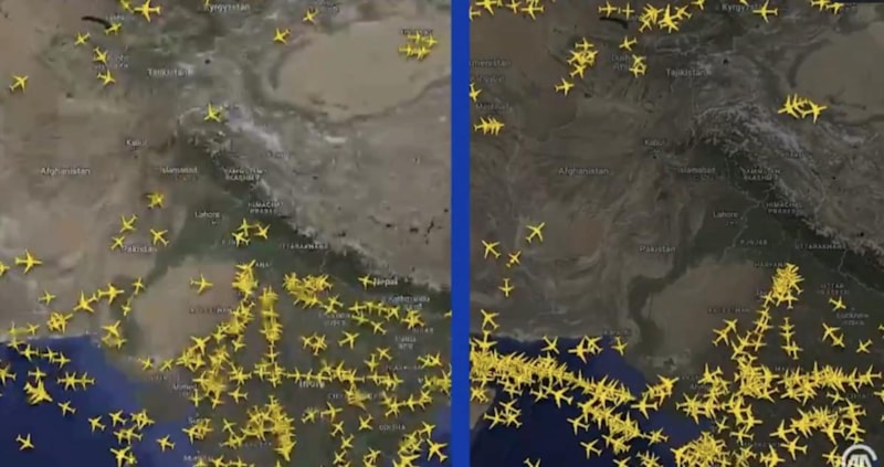 Hindistan ile Pakistan arasında yaşanan askeri gerilimin ardından iki ülkenin hava sahasında sivil uçuş trafiğinde belirgin bir azalma görüldü.