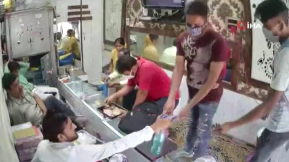 Hindistan’ın Uttar Pradesh eyaletine bağlı Aligarh kentinde 3 hırsız girdikleri kuyumcuyu koronavirüs tedbirlerine uygun şekilde soydu.