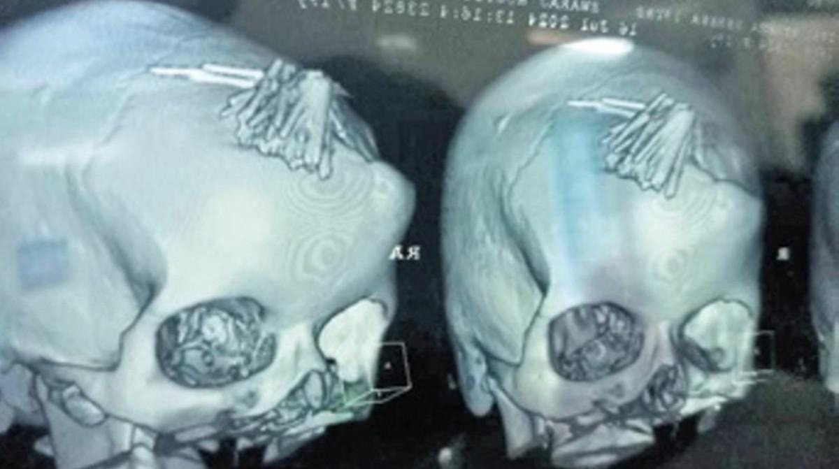 Kafasında iğne bulundu