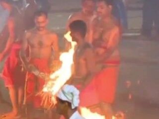 Hindistan'daki Ateş Festivali'nde yanan meşaleler havada uçuştu VİDEO