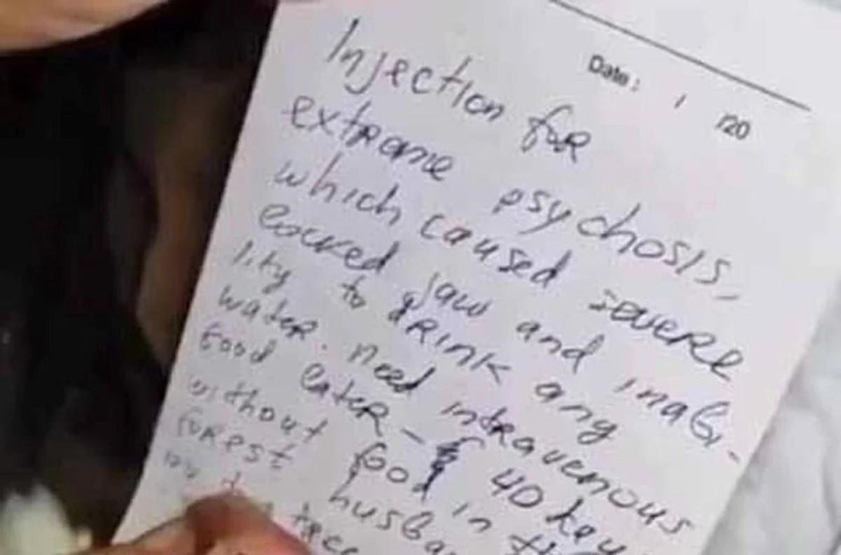 Kurtarıldığında konuşacak mecali dahi olmayan kadın, 40 gündür yemek yemediğini anlatan bir not yazdı.