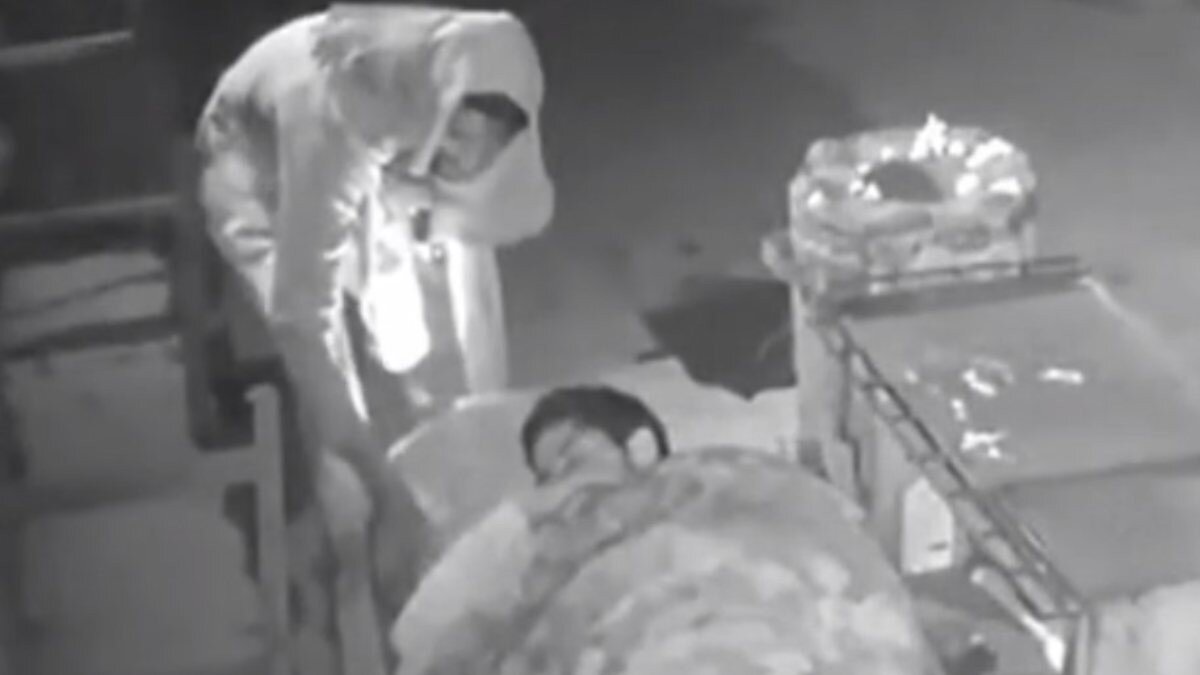 Evsiz adam, güvenlik görevlisinin yanına geldi ve onu uyandırdı. Bu anlar anbean kameraya yansıdı.