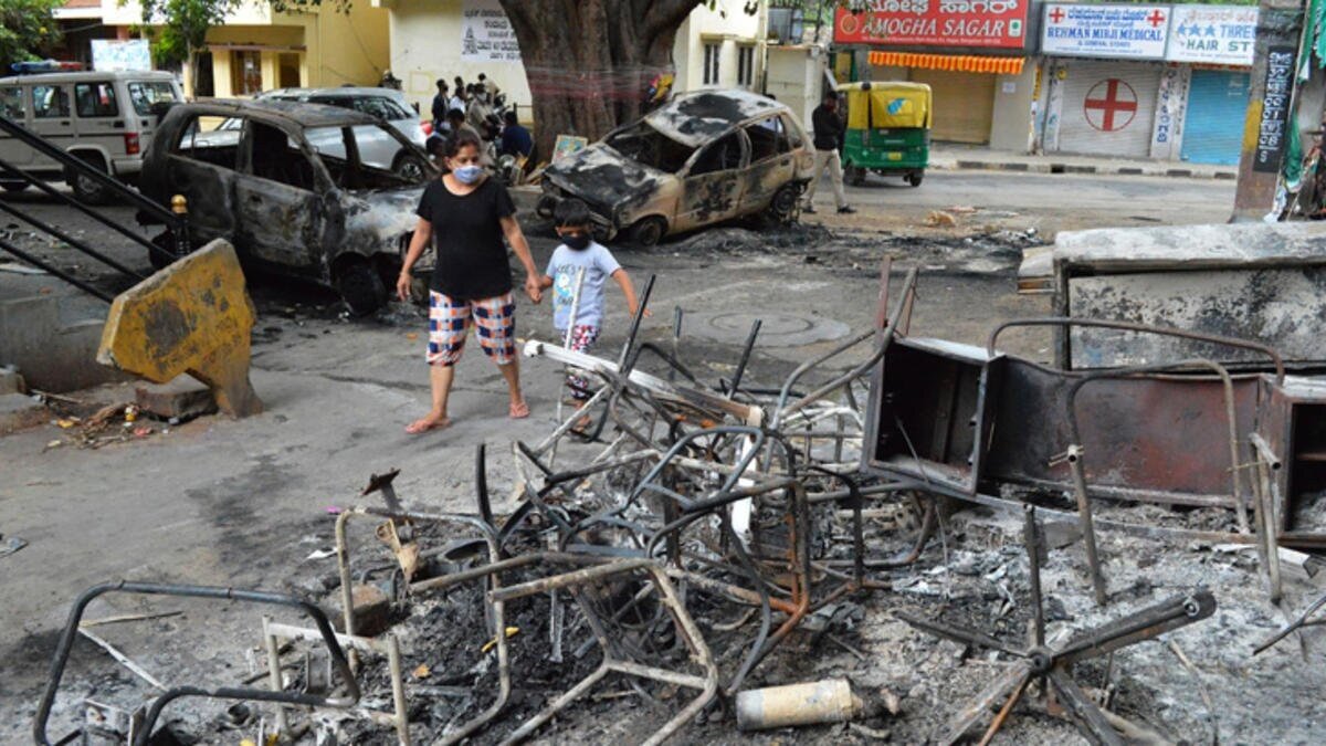 Sosyal medyada Hazreti Muhammed (S.A.V)) ile ilgili hakaret içerikli paylaşımının ardından binlerce Müslüman'ın, Hindistan Ulusal Kongresi'nin (INC) milletvekili Srinivas Murthy'nin yeğeni P. Naveen’in evinin önünde toplanarak birkaç aracın ateşe verildiği belirtildi.