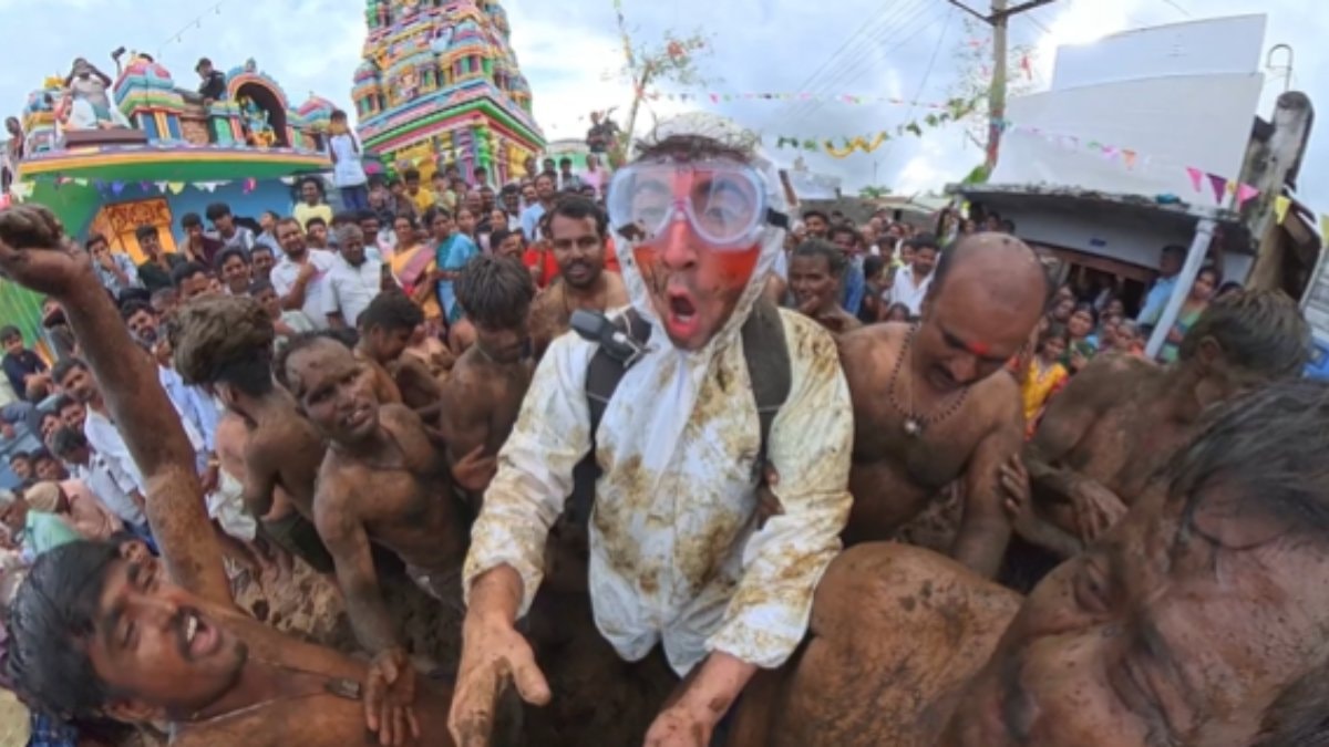 Oliveria, Hindistan’da katılımcıların kutsal olduğuna inandığı inek dışkısını birbirine attıkları bir festivale katıldı.