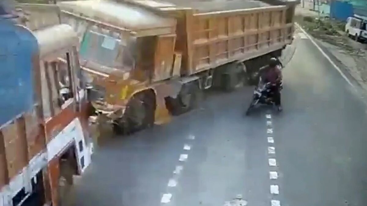 Hindistan'ın Rajendranagar bölgesinde, yol kenarında duran bir motosikletli aniden yola çıkarak kazaya yol açtı.