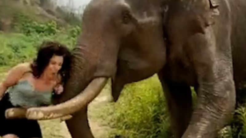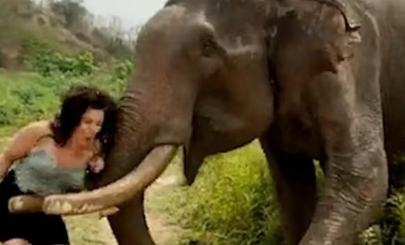Fil, saldırdığı kadını geriye doğru savurdu. Görüntüyü çeken kişi de neye uğradığını şaşırdı. Saldırıdan hemen önce kadının, fil hakkında "Ne kadar havalı biri?" dediği duyuluyor.