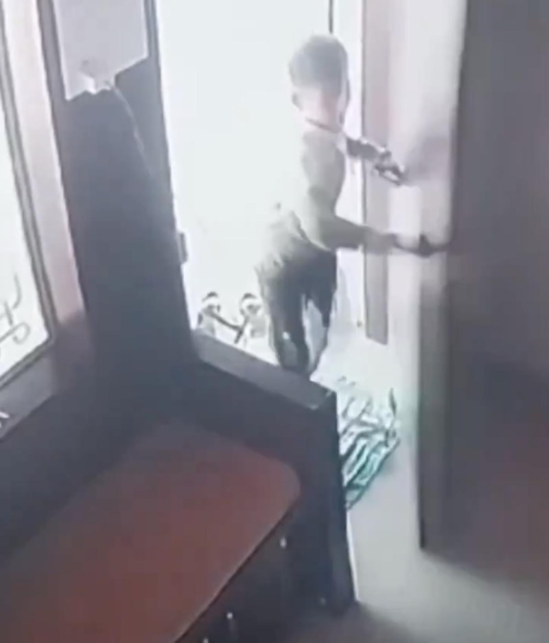 Hindistan’ın Maharashtra eyaletinde telefonla oynayan 12 yaşındaki Mohit Ahire, bulunduğu ofise leoparın girdiğini görünce soğukkanlılıkla leoparın arkasından kapıyı kapatarak kaçtı.