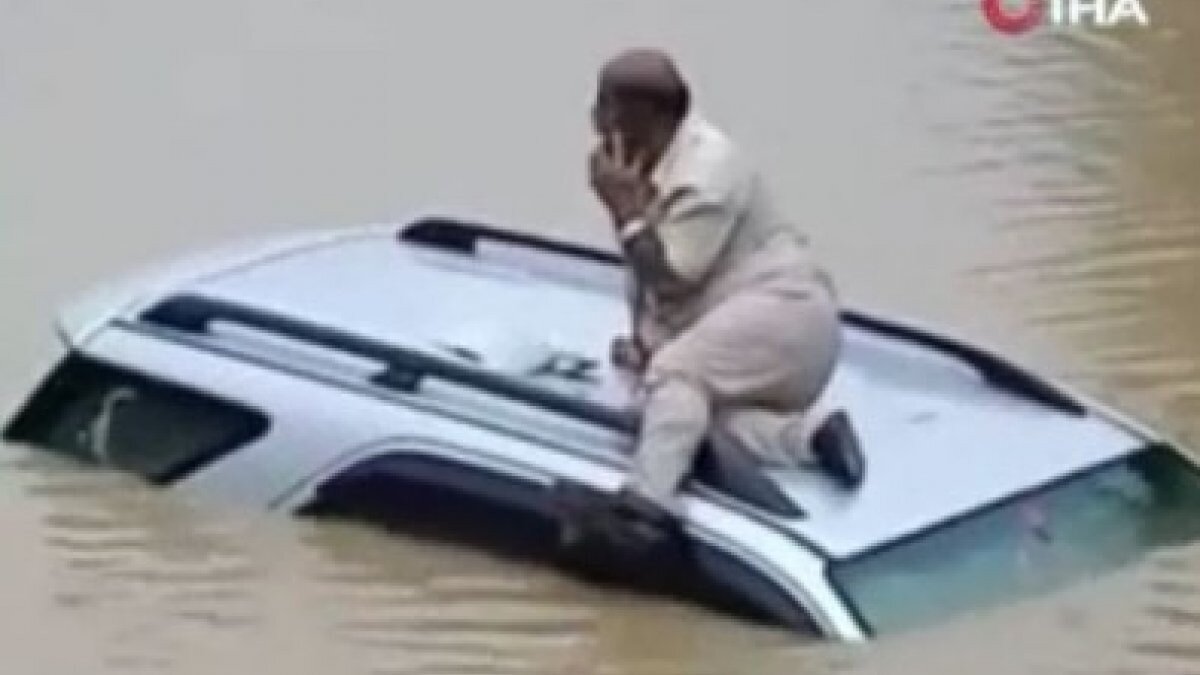 Sel suları ile dolan alt geçitte aracı ile mahsur kalan bir sürücü ise aracının üzerine çıkarak kurtarılmayı bekledi.