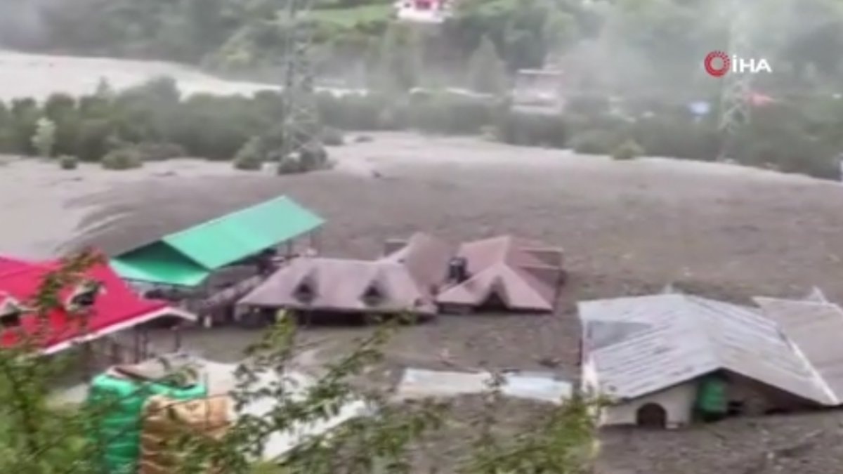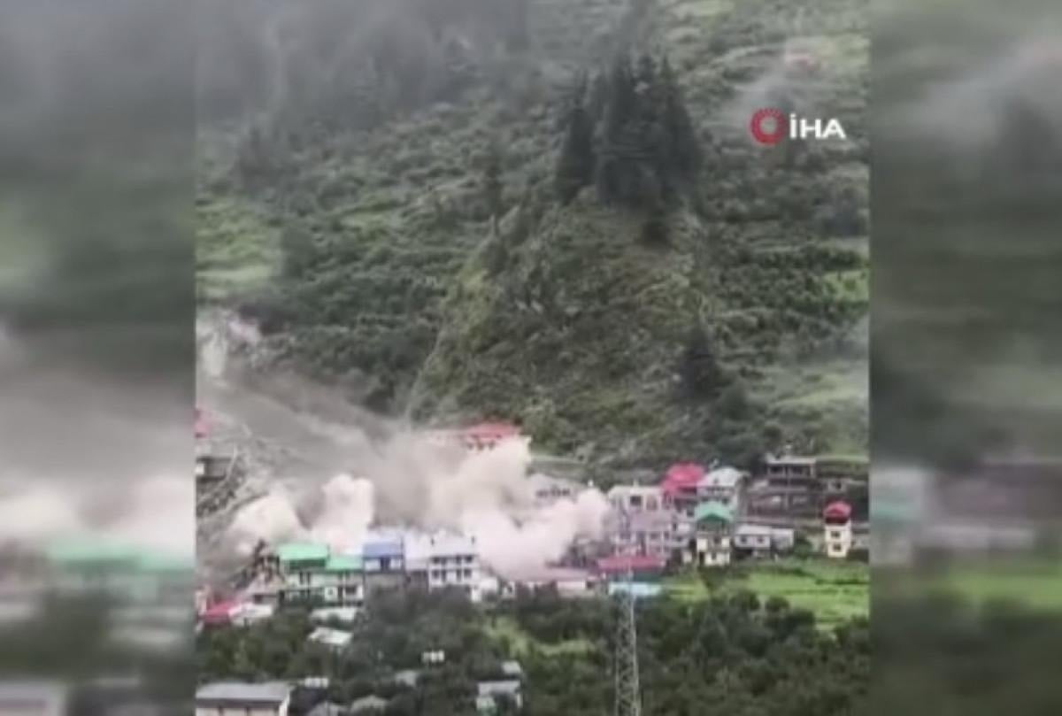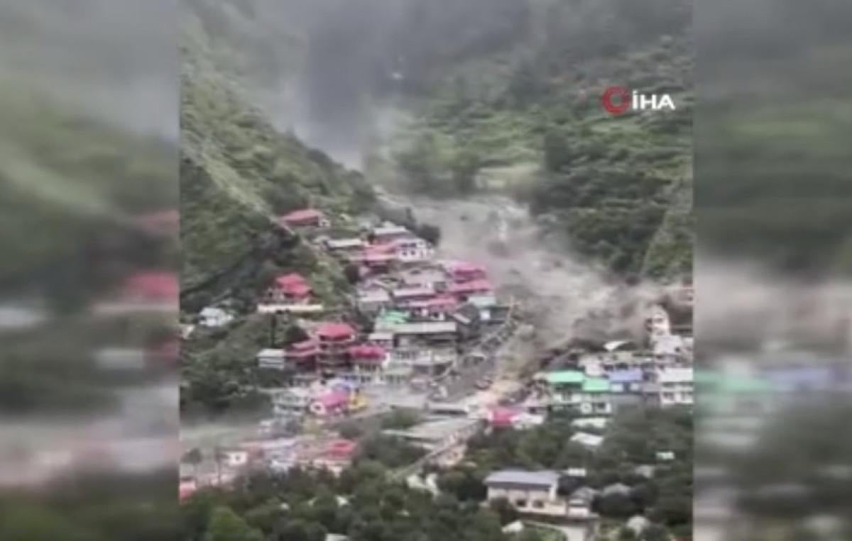 Uttarkashi kasabasında dağdan gelen sel, turistik Dharali köyünü sular altında bıraktı.