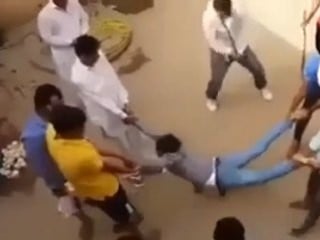 Hindistan'da tecavüz suçundan yakalanan adam kol ve bacaklarından tutularak sopalarla böyle cezalandırılıyor.