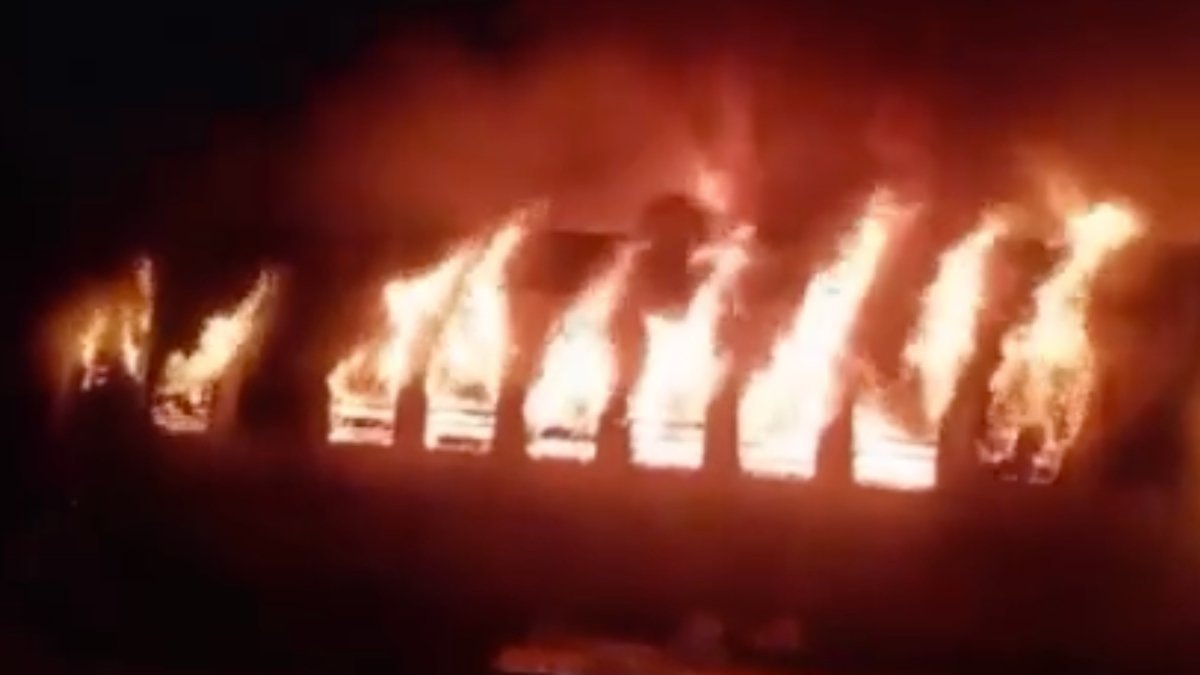 Madurai istasyonundaki yolcu treni alev topuna dönerken bölgeye itfaiye, polis ve sağlık ekibi sevk edildi.