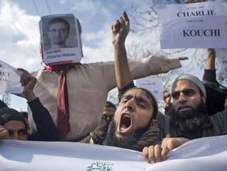 Mizah dergisi Charlie Hebdo'nun Hazreti Muhammed'i konu alan karikatürleri bölgede yoğun olarak gençlerin katıldığı gösterilerde protesto ediliyor. Keşmirliler, karikatürleri hem İslami inançlara hem de batının Müslüman kimliğine yönelik saldırısı olarak değerlendiriyor.