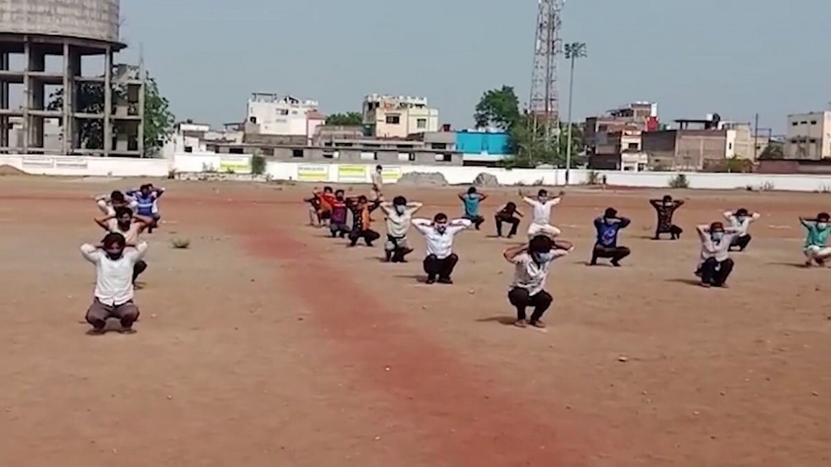 Koronavirüs kurallarını ihlal edenleri sıra dışı yöntemlerle cezalandıran Hint polisi, bu kez Madya Pradesh eyaletinin Burhanpur ilçesinde kayda alındı.