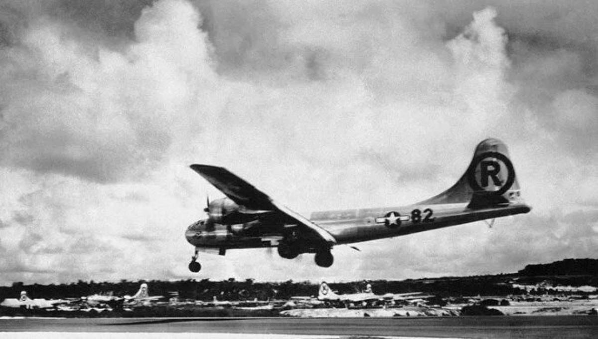 Enola Gay adlı Amerikan B-29 bombardıman uçağı, "küçük çocuk" adlı nükleer bombayı bıraktı.