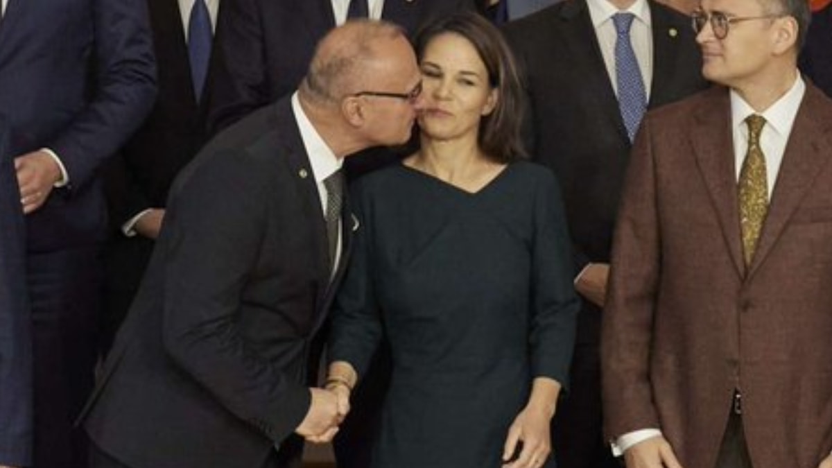 Avrupa Birliği konferansına katılan Radman, Alman mevkidaşı Annalena Baerbock'u, yanında durduğu sırada öpmeye çalıştı.