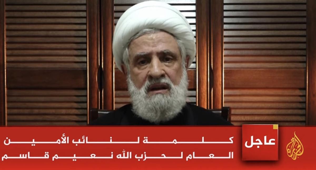İsrail'in Lübnan'a karşı düzenlediği kanlı saldırılara dikkat çeken Naim Kasım, İsrail'in ABD'nin desteği ve tüm imkanlarıyla Lübnan topraklarına ve sivillere saldırdığını, katliam yaptığının altını çizdi.
