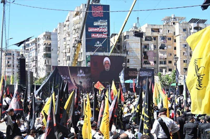Hicri takvime göre Muharrem ayının 10. gününde, Kerbela'da şehit edilen Hazreti Hüseyin için Beyrut’un güneyindeki Dahiye bölgesinde düzenlenen Aşura töreninde binlerce kişi toplandı.