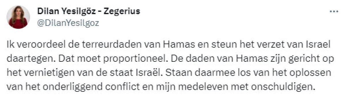 Gelişmeye ilişkin sosyal medya hesabından da açıklama yapan Yeşilgöz, Hamas'ın saldırılarını kınadığını, İsrail'in yanında olduğunu anlattı: