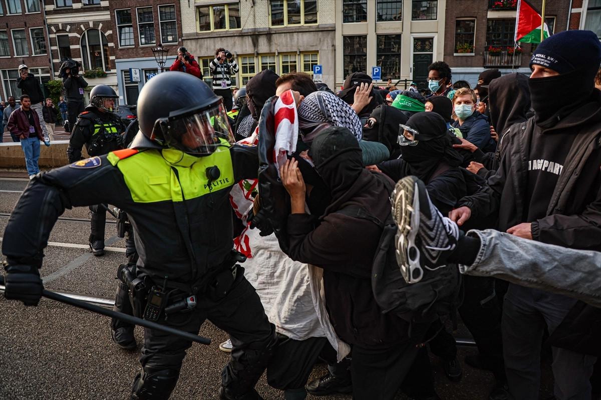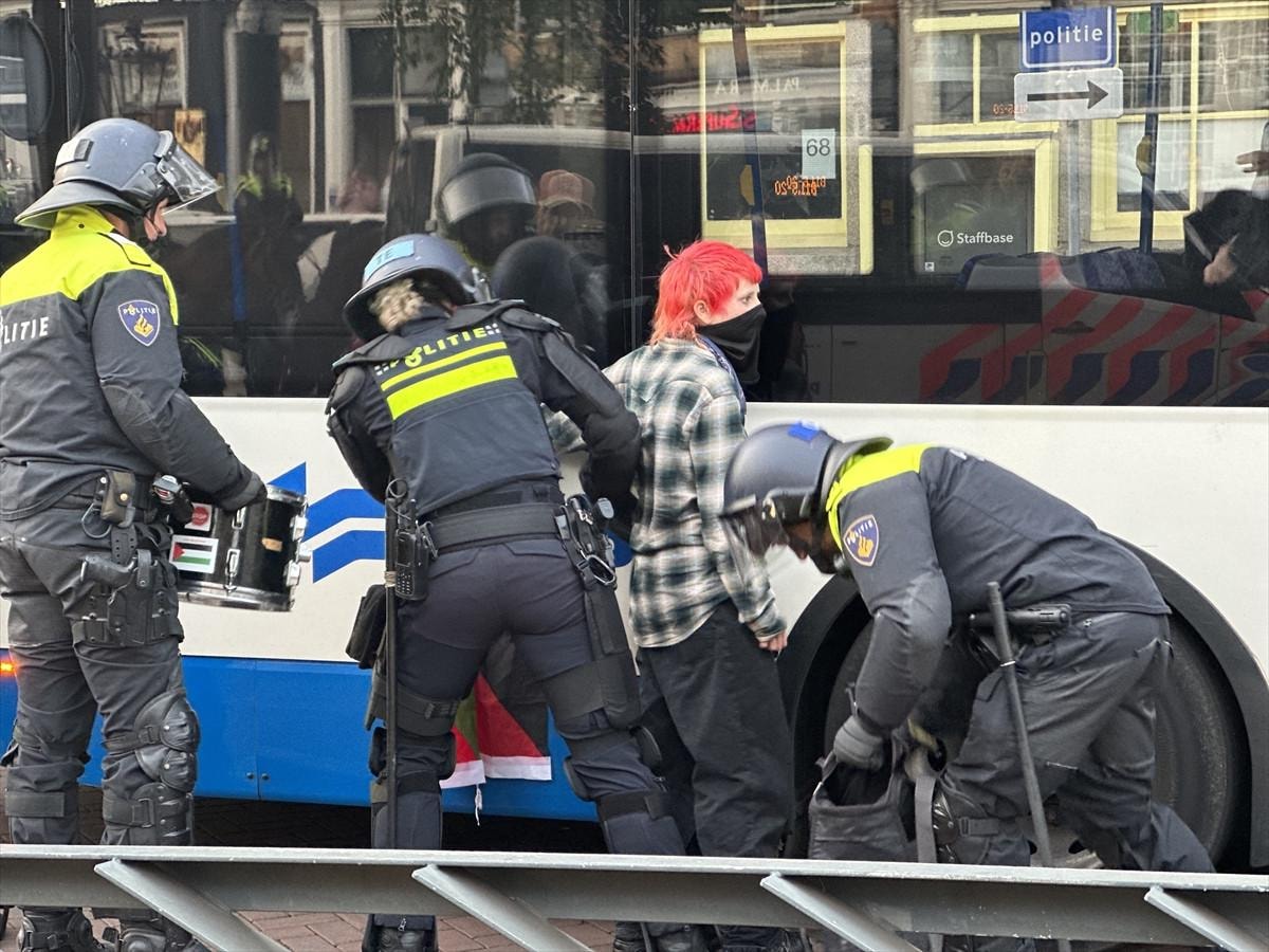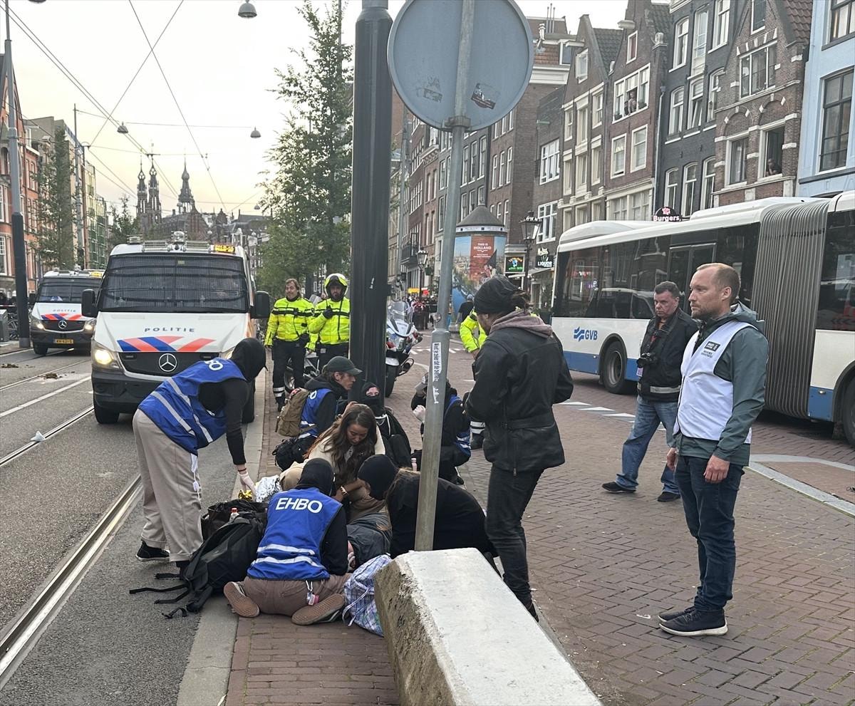 Filistin yanlısı gösteriye katılanların Amsterdam Merkez İstasyonu yakınında belirlenen alanda gösteri yapmalarına izin verilmesine rağmen, bir süre sonra Hollanda polisi göstericilere tazyikli su ile müdahale etti.