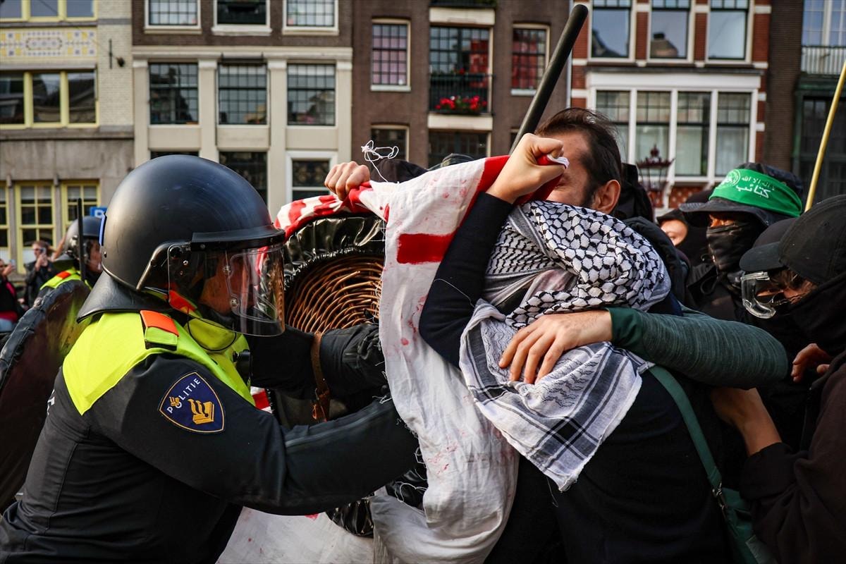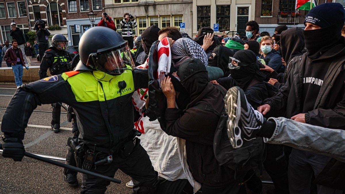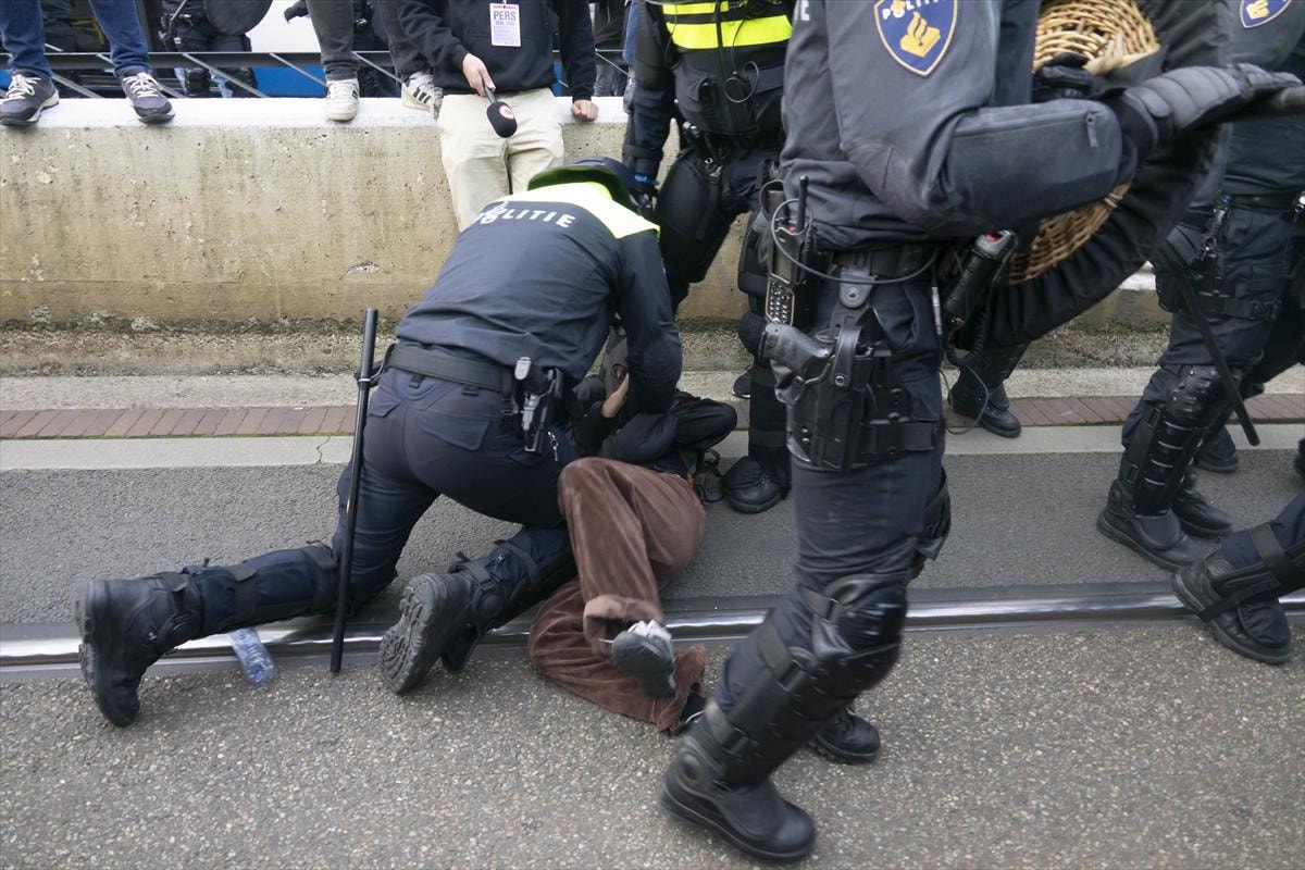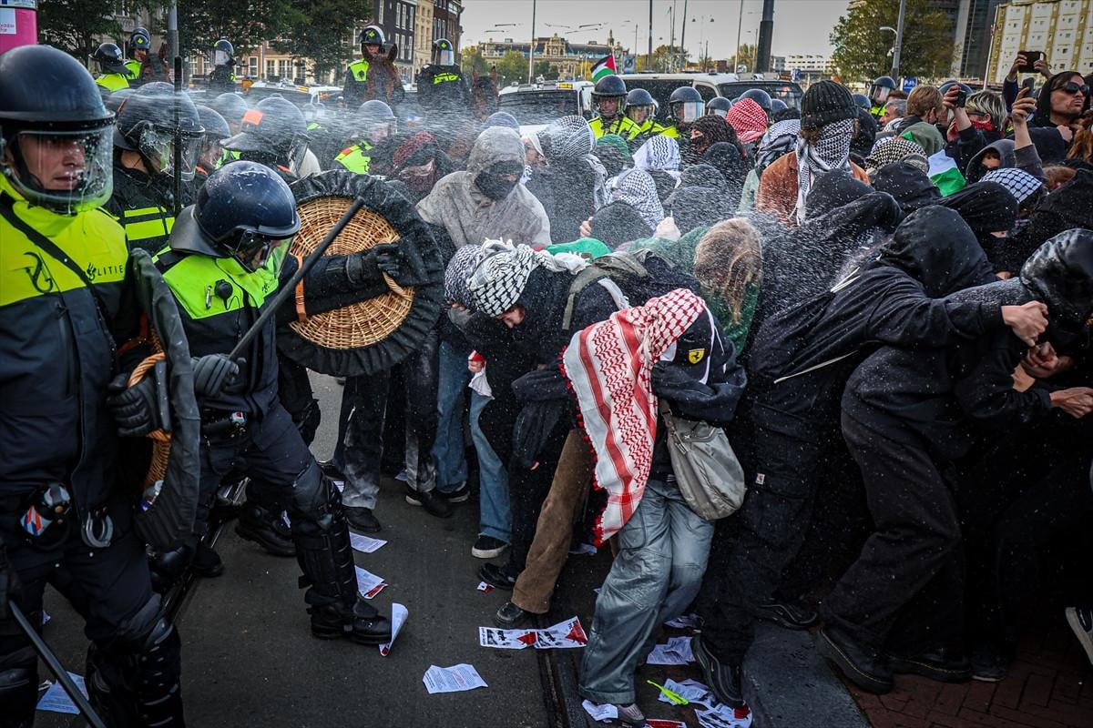Filistin yanlısı gösteriye katılanların Amsterdam Merkez İstasyonu yakınında belirlenen alanda gösteri yapmalarına izin verilmesine rağmen, bir süre sonra Hollanda polisi göstericilere tazyikli su ile müdahale etti.
