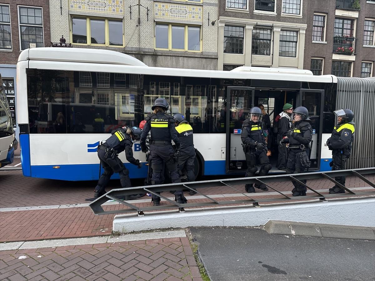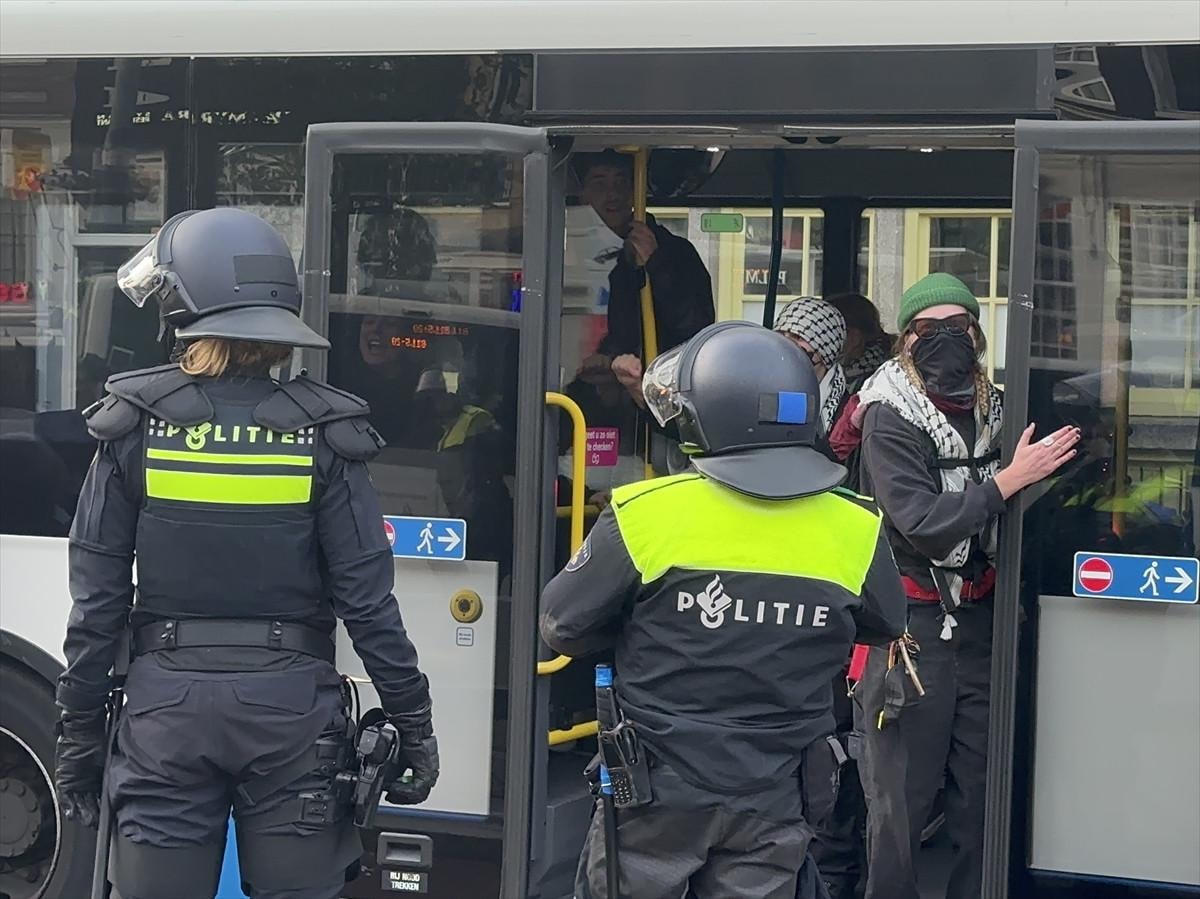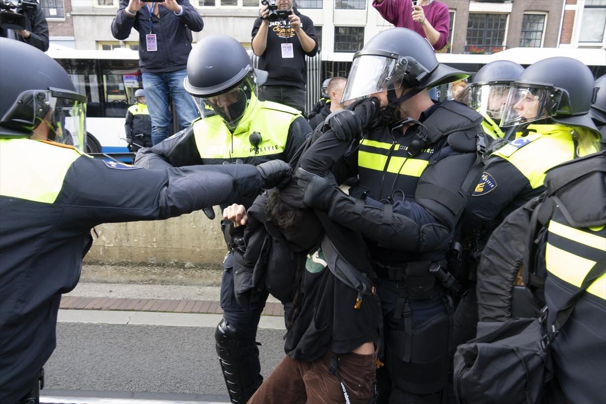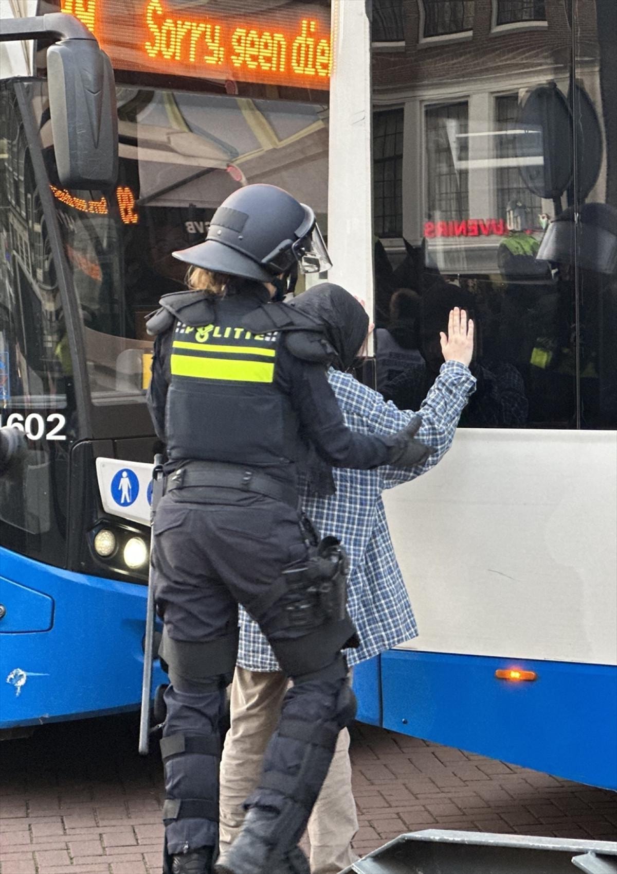 Gözaltına alınan ve tutuklanan onlarca protestocu otobüslerle Amsterdam'dan uzaklaştırıldı.