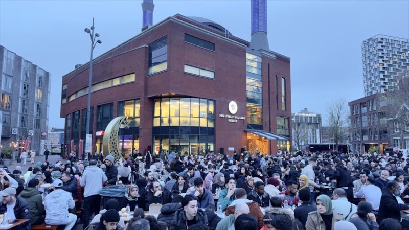 Hollanda’da tren istasyonlarının merkezi olan Utrecht tren garına yürüme mesafesindeki "Cami Meydanı" diye adlandırılan alanda düzenlenen sokak iftarında, aileler buluştu.