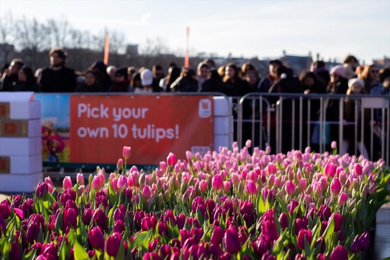 Lale üreticileri tarafından sergilenen farklı renk ve türlerdeki 200 bini aşkın lale, ziyaretçilere ücretsiz olarak dağıtıldı. Etkinlik alanında sıraya giren katılımcılar, kendilerine verilen keseleri rengarenk lalelerle doldurdu.
