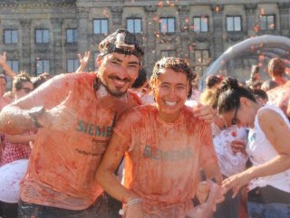 Rusya'nın ambargosunu protesto etmek için düzenlenen etkinlikte, çiftçilerin ürünlerini satamadıkları için büyük sorun yaşadıkları belirtildi. Etkinlik, İspanya’nın Bunol kasabasındaki geleneksel domates savaşından esinlenerek gerçekleştirildi. Hollandalıların yanı sıra çok sayıda turistin de katıldığı etkinlik için, Dam Meydanı’nda özel alan oluşturuldu.