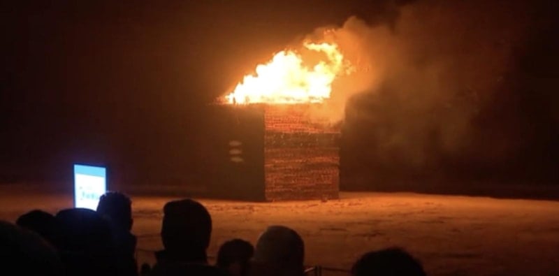 Zaandam'ın Poelenburg bölgesinde yollar, yakılan enkazlarla kapatılırken, evlere havai fişek fırlatıldı.