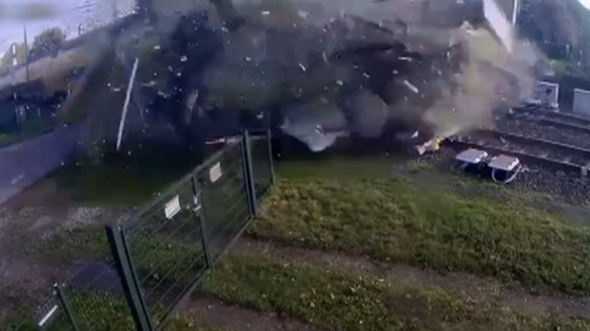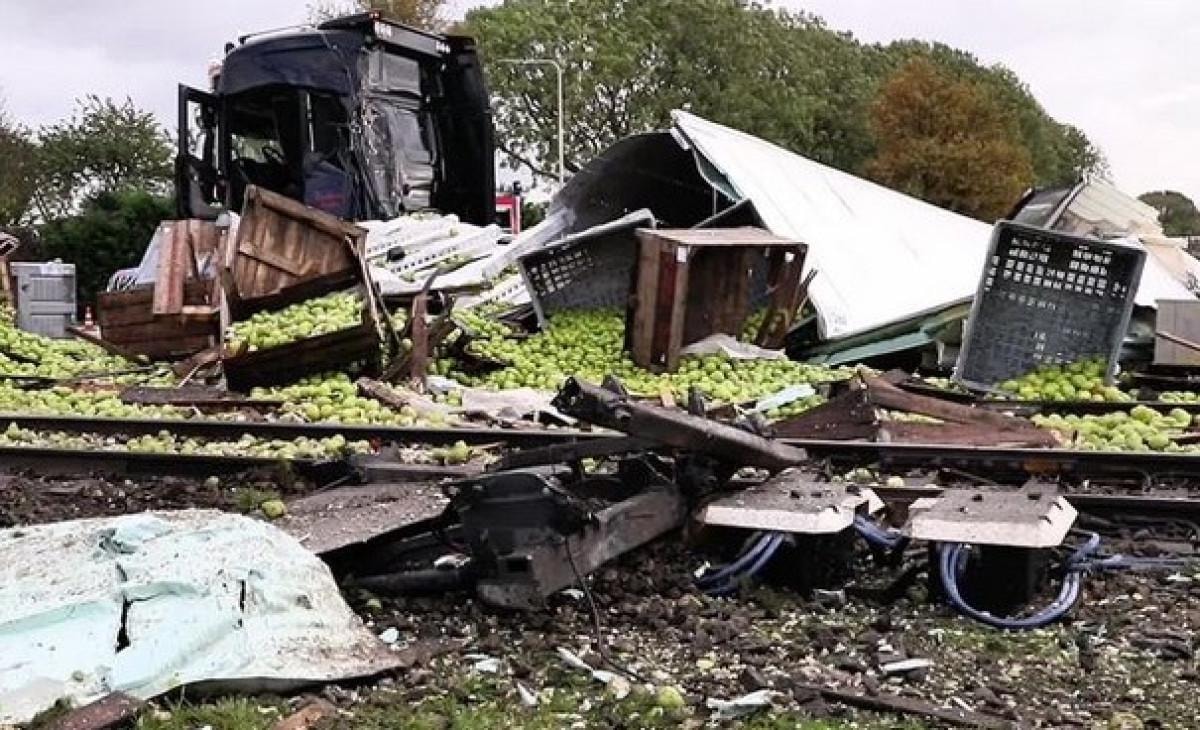 - Hollanda'da, Meteren köyündeki hemzemin geçitte geri manevra yapan armut yüklü tıra yolcu treni çarptı.