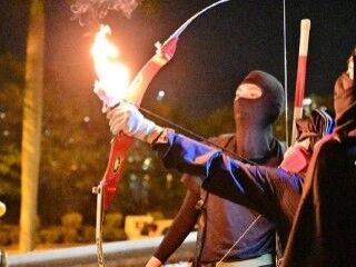 Hong Kong’da eylemciler polise ateşli ok fırlattı VİDEO