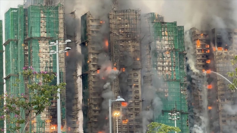 Hong Kong'da bir yüksek katlı binalar kompleksinde yangın faciası yaşanıyor.