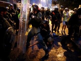 Hong Kong'da polis ve göstericiler birbirlerine saldırdı VİDEO