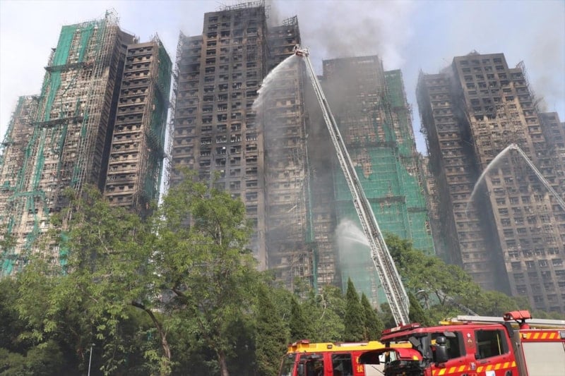 Hong Kong'un kuzeyinde yer alan Tai Po bölgesinde dış cephelerinde tadilat çalışmaları için bambu iskeleler bulunan "Wang Fuk Court" sitesindeki 31 katlı gökdelende dün başlayarak diğer binalara yayılan yangında bilanço ağırlaşıyor.