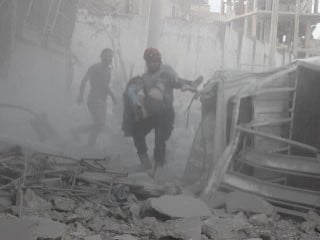 Beyaz baretliler saldırıların hemen ardından bölgeye gelip enkazda arama-kurtarma çalışmaları yürüttü. Bombardımanın ardından alev alev yanan binalara itfaiye olmadığı için yine beyaz baretliler müdahale etti, alevleri söndürmeye çalıştı.