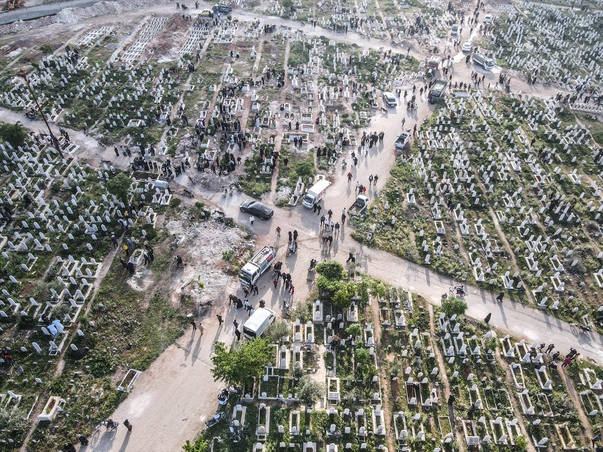 Bölgedeki camilere akın eden halk, namaz sonrasında mezarlıklara giderek hayatlarını kaybeden yakınlarının kabirlerine ziyarette bulundu.