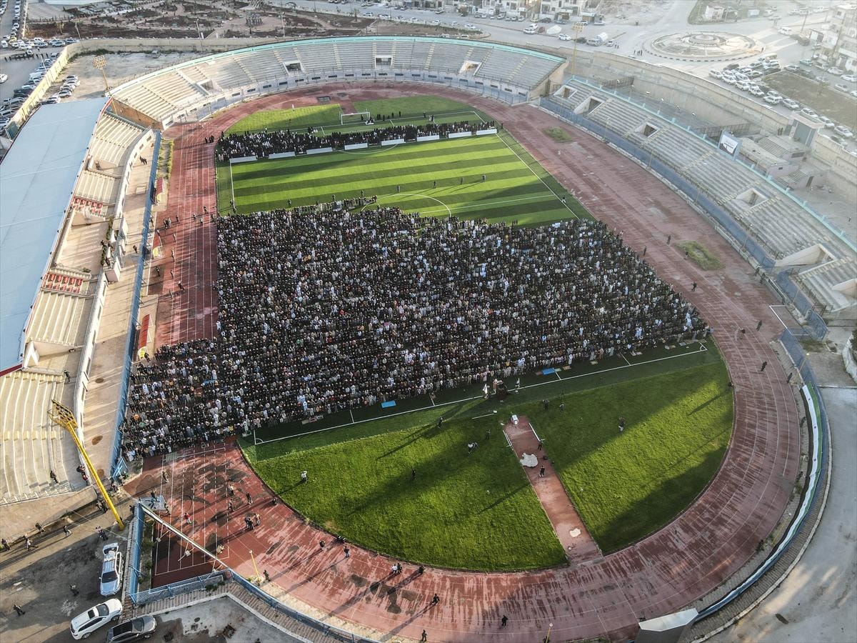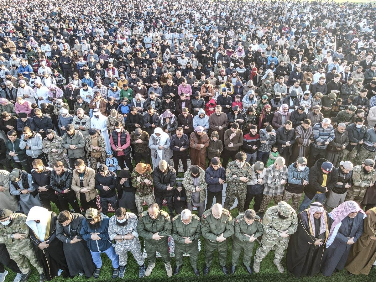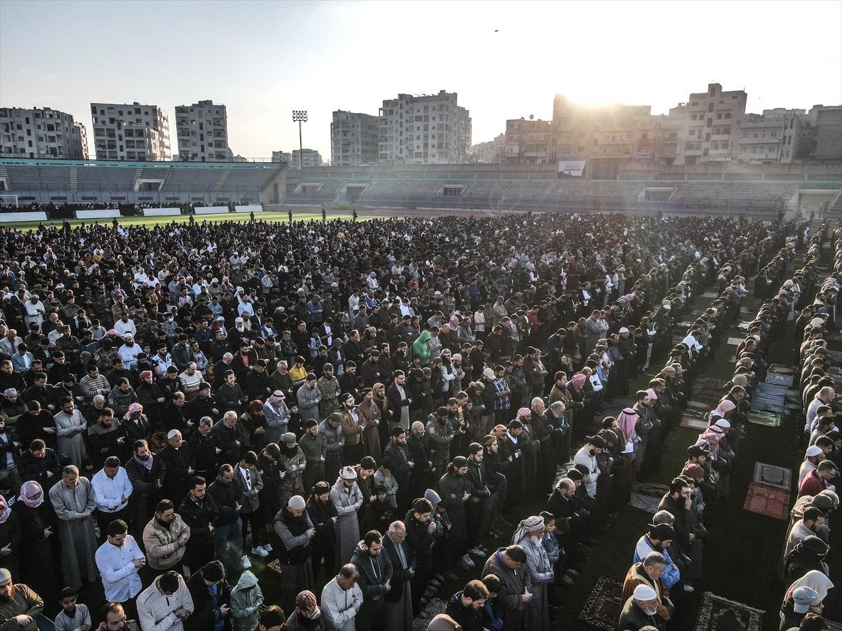 İdlib ve kırsalından siviller, İdlib Stadyumu'nda toplandı. Okunan hutbelerde kardeşlik ve ibadetin önemi vurgulanırken huzur ve güven ortamının devamının yanı sıra terör örgütlerinin işgal ettiği toprakların kurtarılması, Esad rejiminin saldırılarında hayatlarını kaybedenler, saldırılar nedeniyle zor duruma düşenler ve depremzedeler için dua edildi.